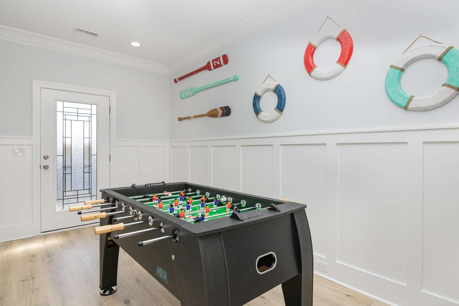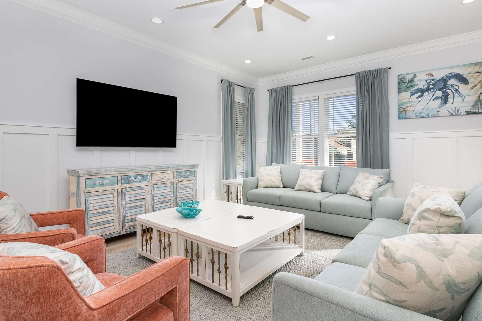 Welcome to Hidden Treasure — a stylish beach haven just three blocks from the Atlantic Ocean where laid-back luxury meets coastal adventure. This spacious six-bedroom retreat accommodates up to 26 guests and offers everything you need for the ultimate beach getaway: a private pool and spa, chef’s kitchen, game room, and luxurious en-suites.