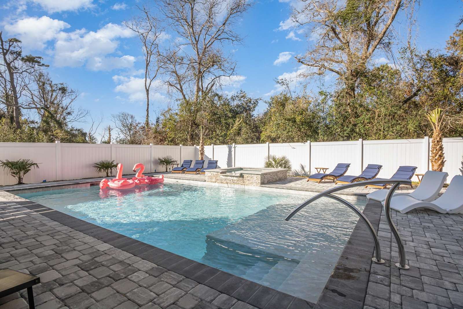 Hidden Treasure: Where Luxury Meets the Beach Life Three blocks from beach access, this spacious six-bedroom getaway is perfect for family fun or group getaways — with a private pool, spa, and endless entertainment just minutes from Barefoot Landing!